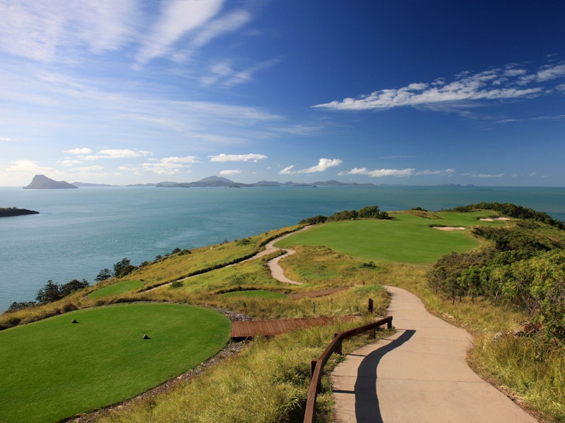 Few golf experiences in Australia can match the sheer spectacle of Hamilton Island Golf Club. Set on its very own island in the heart of the Whitsundays, this course isn’t just a round of golf—it’s a destination.